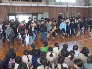 体育館という狭い空間で、280名によるジャンケン列車が成立するものなのか・・・興味津々で見ていましたが、ちゃんと成立し、みんなとっても楽しんでいました。チャンピオンは3年生の河野瑛隼さんでした。