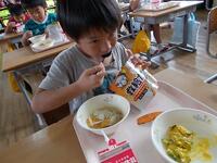 お昼は、おいしいお弁当をニコニコ笑顔で食べました。