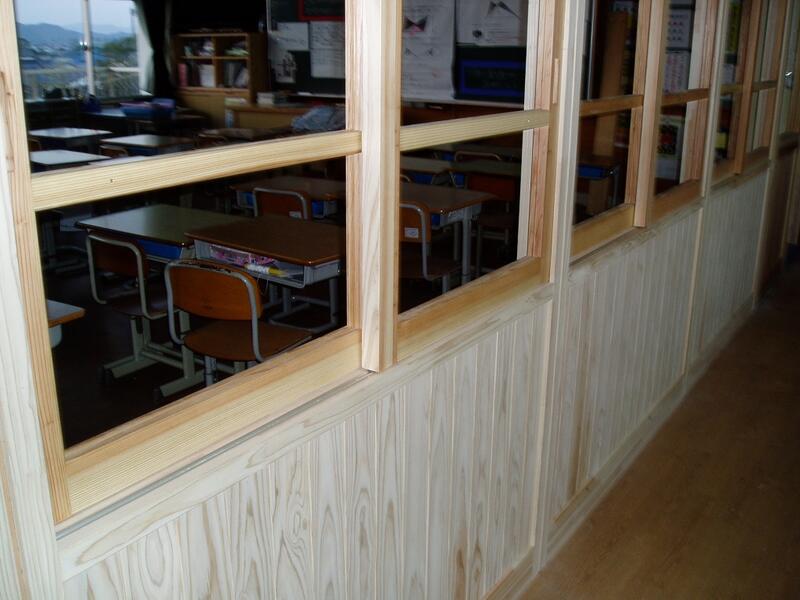 【6年生教室廊下側】      【木のにおい・ぬくもりを感じます】