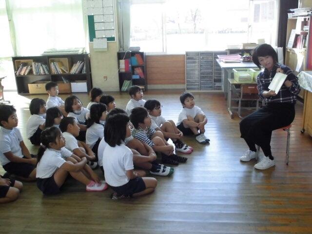 今月のめあてが「いろいろな本をたくさん読もう」なので、その取組の一環として計画・実施しました。担任の先生たちは自分以外のクラスで、そして担任でない先生たちもいろんなクラスに配置して読み聞かせをしました。読む本の準備については、学校図書館支援員の先生を通して、町立図書館のご協力を頂きました。(ありがとうございます)