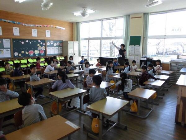 60名の1年生が入学して、今日が2日目です。実質的には、今日から小学生らしい学校生活がスタートしました。朝から落ち着いた雰囲気で担任の言うことに耳を傾けていました。