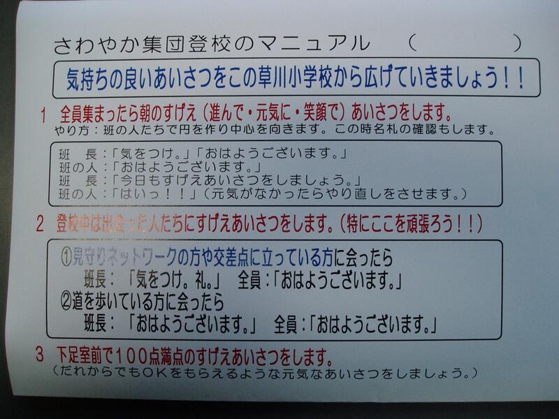 て確認を行いました。その時,以下のような「さわやか集団登校のマニュ