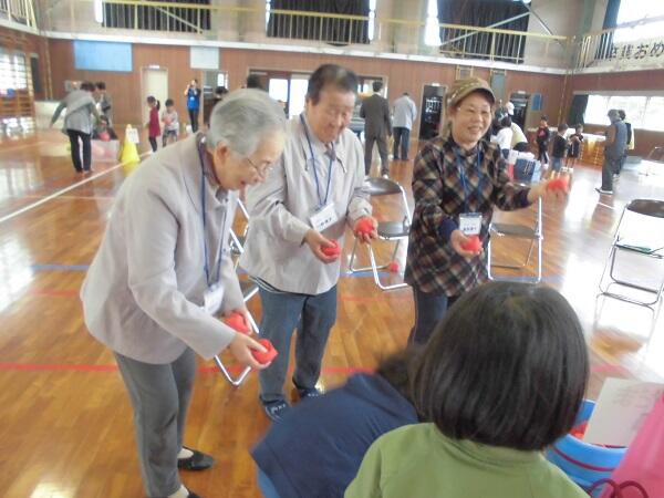 26名もの方が来てくださり、「けんだま」「あやとり」「まりつき」「こま」「竹ぽっくり」「おてだま」をして交流しました。