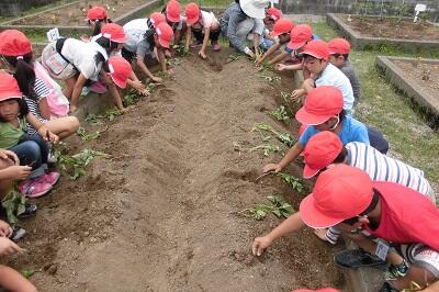 昨日、芋の苗をいただきました。(毎年、後藤さんから1・2年が植える分の苗をいただいています)昨日、本日で1・2年生が植え付けをしました。大きく育って、たくさん収穫できるといいです。