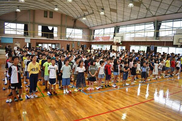 今日の1校時は、2学期の始業式でした。夏休み中に大きな事故やけがなどがなく、元気な顔が体育館に並び、嬉しい気持ちになりました。
