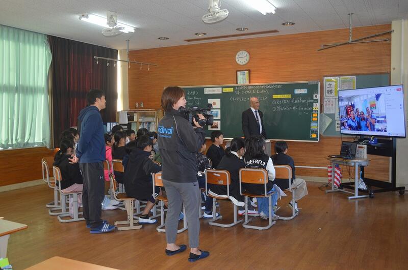 子どもたちは、オーストラリアの5年生が上手に日本語で自己紹介をする様子を真剣に聞いたり見たりしていました。