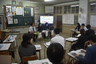 県内から約70名の教職員が集まり、研究の概要説明の後に授業参観及び研究協議会を行いました。