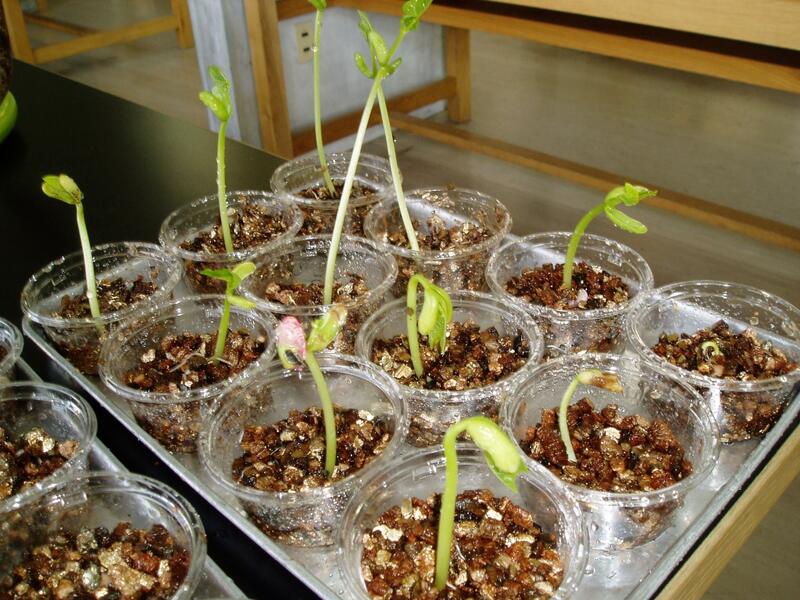 が気になり,理科室に行ってみました。すると,順調に芽を出しすくすくと育