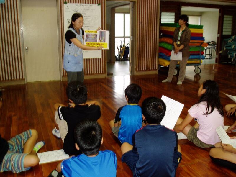 のです。下は,トイレ掃除の班長達に,掃除のポイントについて養護教