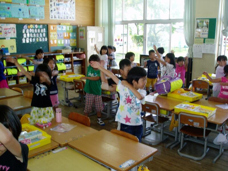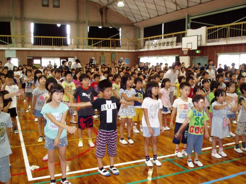 昨日全校集会でラジオ体操の練習をしました。これは7月21日に