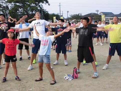 ラジオ体操があります。中学生や保護者の方,地域の方にも参