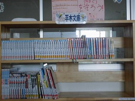 草川小学校の図書室には「平木文庫」が並んでいます。