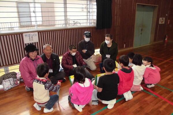 今日は,1年生が生活科の学習として,「おじいちゃん・おばあちゃんとの交流会」を行いました。コマ回し,まり突き,お手玉,けん玉などの遊びを一緒に楽しみました。その後は,おじいちゃん,おばあちゃんの子どもの頃のことなどを質問しました。