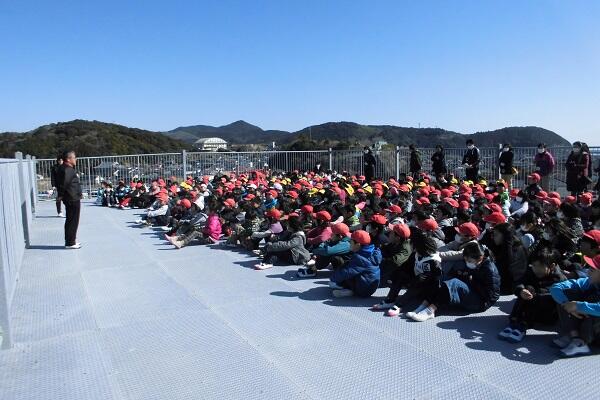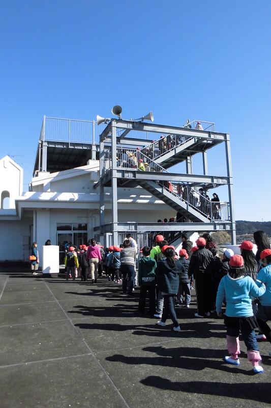 子ども達は自分の掃除場所から,近くにいる職員の指示を聞きながら,屋上へ避難しました。