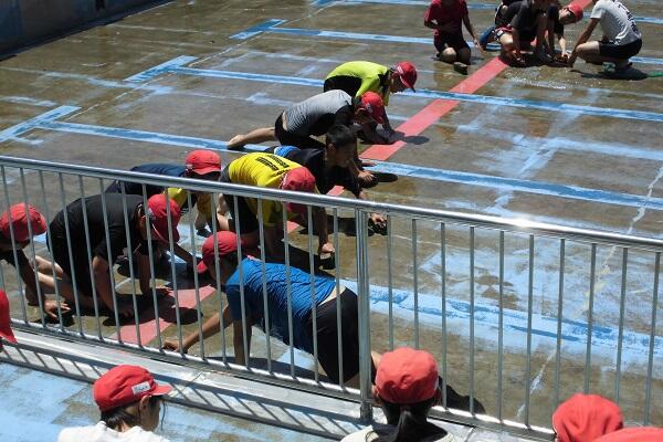 6年生が全員で一生懸命にプール内の床や壁を磨いてくれました。