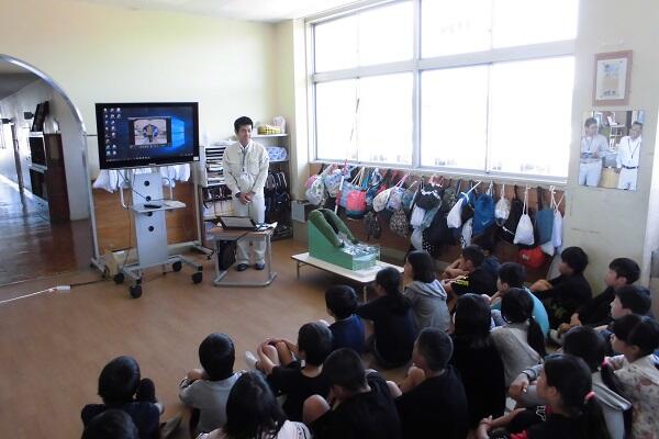 日向土木事務所から3名の方が来て下さり,土砂災害のメカニズムや防災のしかたなどを教えて下さいました。模型を使って分かりやすく話して下さったので,気をつけるべきことなどがよく分かりました。