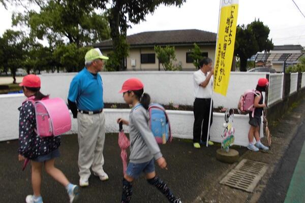 今朝は,民生児童委員の方々が,あいさつ運動で正門前に立ってくださいました。