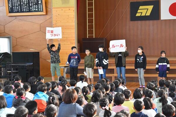 今朝は、12月の全校朝会を行いました。はじめに、転入生の紹介をしました。草川小の仲間が2人(4年生と5年生)増えました。全員で、307名です。そのあとは、校長先生のお話、生活防災委員会からの連絡、先生方からの連絡、表彰がありました。2学期の終わりが近づいています。学習や生活をしっかりまとめていきましょう。