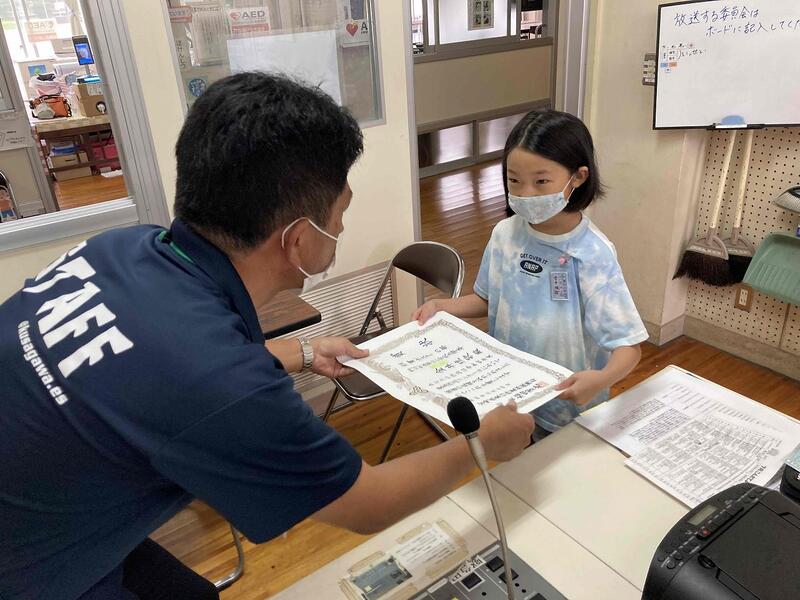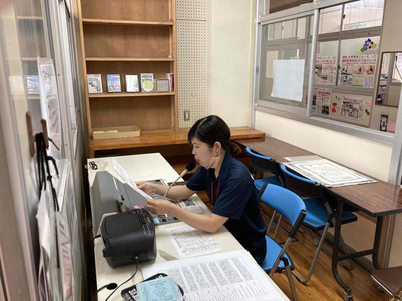 1学期の反省を具体的にし、2学期や夏休みにがんばりたいことを、自分の言葉で話してくれました。楽しい夏休みにしてくださいね。2人には放送室に聞こえる、大きな拍手が届きました。