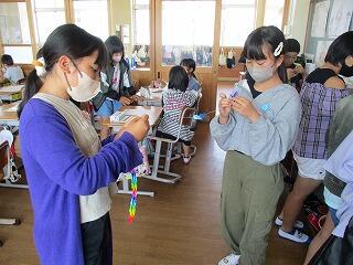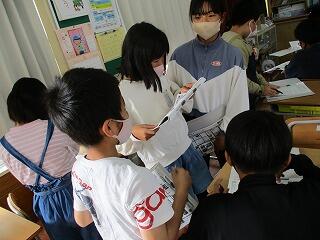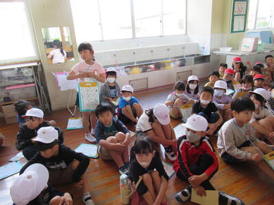 一生懸命に説明を聞く1年生と、優しく声をかけてお世話する2年生が仲良くなった姿を見て、担任も心がほっこりしました。