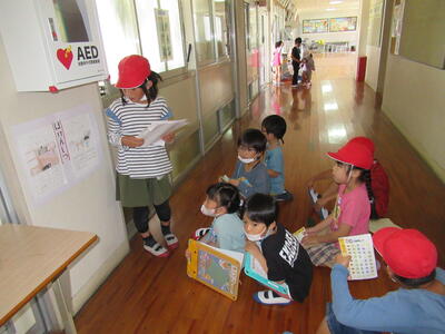 借りる本が早く決まった子たちは、図書館の中でさっそく借りた本を広げて読み始めていました。