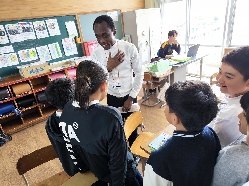 どちらもアフリカ(チョコレートやカカオ、金が有名なガーナ、そしてサッカーの有名なナイジェリア)出身の先生で、教室が一気にアフリカの雰囲気になり、子どもたちはとても興味津々で先生方とコミュニケーションをとっていました。