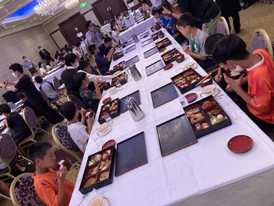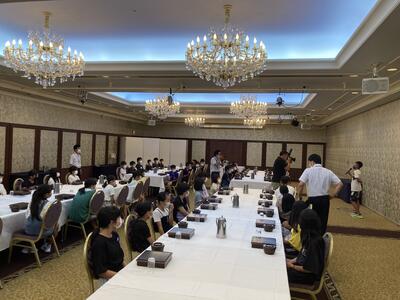 ロビーに入って「きれ〜い」会場のシャンデリア見て「すご〜い」部屋入って「スゲ〜」子どもたちの声を聞いて、ホテルスタッフの方がとって喜んでいました。ゆっくり過ごしてくださいとホテルの方から言ってもらいました。