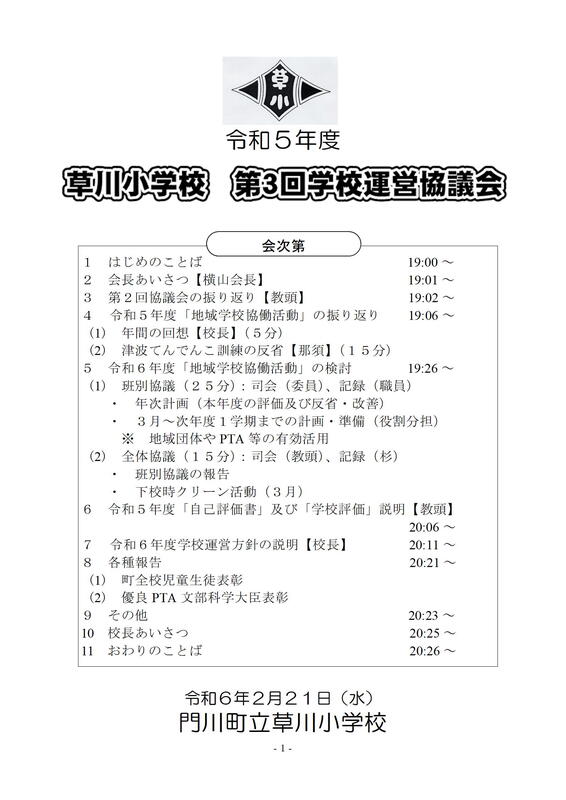 コミュニティ・スクール通信N0.2が完成し、本日(3月6日)各家庭に配付します。⇒ コミュニティ・スクール通信No.3.pdf