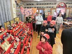 はじめに、運動場で宝探しなどをして楽しみました。その後、三ヶ瀬地区公民館に出掛け、雛山を見学しました。山や川などを再現したものや、数々のひな人形の美しさに感動しました。その後、餅つきを体験させてもらいました。