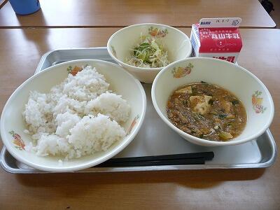 今日は麻婆豆腐でした。ピリッとした辛さは食欲をそそりますね。たくさん食べて運動会の練習頑張りましょう。