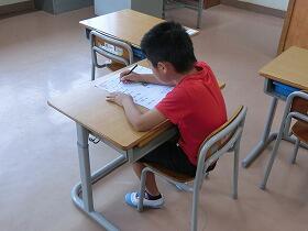 カメラを片手に、授業参観にでかけました。6年生は、理科で唾液のはたらきを調べる実験を行っていました。真剣なまなざしで、試験管の様子を観察していました。5年生も理科で、日なたと日かげの植物の育ちを比較する学習を行っていました。実際に触れたりして気づいたことをノートにまとめていました。4年生もこれまた理科で植物の成長の様子をパソコンを使って調べていました。2年生は、やけに静かだと思ったら、黙々とテストに集中していました。こっそりのぞくと、二人ともとてもよくできていました。1年生は、形の勉強で積み木の片付けがちょうど終わったところで、しっかりカメラに向かってポーズを決めてくれました。運動会も終わり、今度はいよいよ勉強の時期になったことを感じた本日の授業参観でした。