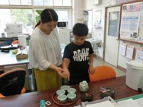 昨日から今日にかけて、いろいろな出来事がありました。まずは、昨日児童数1名の5年生が家庭科でお茶入れの実習を行いました。通常は、家庭科室で実施しますが、1名ということで、今回は、職員室の給湯室を利用して実習を行いました。職員室にいらっしゃった先生方に同じ濃さのお茶を出すために慎重にお茶入れをしている姿が高学年ですがかわいらしさを感じました。最後には一人ずつ丁寧にお茶と和菓子を差し出し、先生方にお礼を言っていただいてとても満足そうでした。