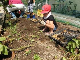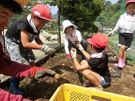 今日は、朝から1・2年生が生活科でジャガイモ掘りを行っていました。今年はジャガイモの生育も良く、店頭に並べても良いような立派なジャガイモが写真のように大豊作でした。お土産としてもらったジャガイモをうれしそうに掲げる子どもたちがとても輝いていました。ちなみにあまりにもジャガイモ掘りをする姿が様になっている麦わら帽子の方は、紛れもなく本校の先生です。