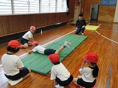 5月2日(水)。今日は、久しぶりにまとまった雨になりました。昨日の日差しがまぶしい中で行った交通教室がうそのような雨です。子どもたちは、外での体育が予定されていましたが、みんな体育館でマット運動や体力テストの練習をしていました。ただ、最近雨が少なかったので、農作物や植物にとっては恵みの雨かもしれません。