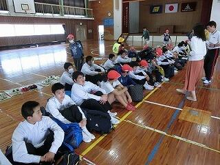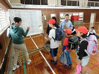 体育館に全員が集合し、保護者が迎えに来た児童から順番に車で帰宅しました。体育館への道は狭いので、一方通行での通行となりましたが、保護者の皆さんの協力により、無事に全員を帰宅させることができました。