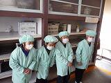 ①給食室にきた給食委員さん。 ②1年生は背が届かないので、③みんなが取り出しやすいよ