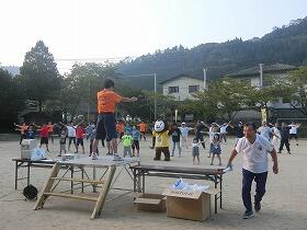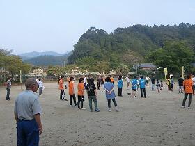 7月26日本日は、以前よりアピールしていた町内一斉ラジオ体操の日でした。今日はスクールバスが運行されないため、子どもたちの参加が少ないことが予想されていました。開会行事を始める直前、30名程度しか参加者の姿が見られず、子どもも2~3名。不安がよぎりました。ただ、開会行事が始まると続々と参加者が集まり、最終的には、目標の100名を達成することができました。さすがに子どもの数は、20名に満たない数でしたが、とにかく地域の方々の参加が多くてびっくりしました。開会行事では、PTA会長さん、上井野区長さんのあいさつの後、みやざき犬の「む~くん」の登場で一気に会場が盛り上がりました。ラジオ放送が始まると「西門川」の名前が流れた瞬間、会場から拍手がおきました。また、ラジオのあいさつに対して、「おはようございます」と参加者全員が元気よくあいさつを返し、心の杜会場と一体化した雰囲気に包まれました。