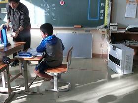 ところで、今朝は、今年1番の冷え込みで、マイナス2度でした。そこで、12月末に購入してもらったファンヒーターのスイッチを子どもたちの登校後、すぐに入れました。教室全体が暖かくなり、子どもたちの学習もはかどっているようでした。残念ながら、写真からは暖かさが十分伝わりませんが…。本校では、気温10度以下の時には、ファンヒーターをつけてもよいルールになっていますので、何となく明日もファンヒーターが活躍しそうです。