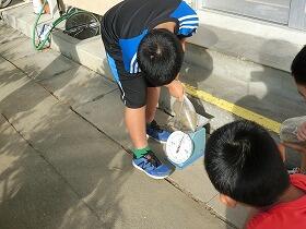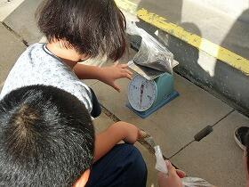 1時間目に外が変に、にぎやかなので、運動場に目を向けてみると3年生が、ビニール袋に砂場の砂を入れていました。何をしているのか尋ねてみると、「算数の勉強で1kgを作ってます。」の返答が。袋を見てみると1回目「明らかにそれは、少ないだろう。」という量をみんな袋に入れていました。いよいよ計量ですが、予想通り100g前後しか砂を入れていませんでした。しかし、その後、何回も試行錯誤を重ねる中で、全員が1kgの量をほぼつかんでいきました。このような学習は、やはり実際に体験しないと身につかないものだと思います。3年生のみなさん、今日は、いい勉強をしましたね。