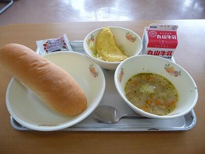 今日の、白インゲン豆のスープには、キャベツ・にんじん・じゃがいもと白インゲン豆以外の野菜もたくさん入っていました。朝からなかなか食欲がでない人はこのようなスープだけでも飲んでくるといいですね。