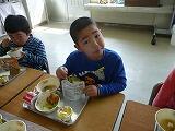 今の学級で食べる最後の給食。5年生は6年生のいなくなった教室で少し寂しそう・・・。