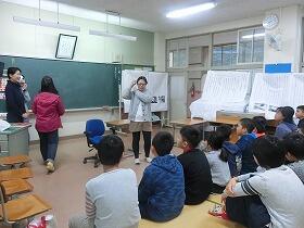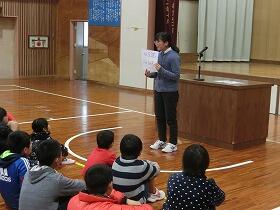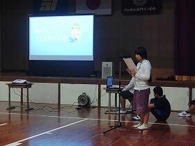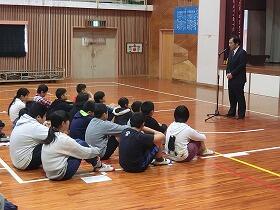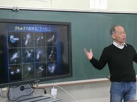 今日の3・4校時に、4~6年生を対象に東京三鷹にある国立天文台の辻本先生から宇宙に関するお話をしていただきました。本年度の開催については、宮崎県では、本校のみということで、大変貴重なお話を聞く機会に恵まれたところです。お話では、まず宇宙の広さを様々な方法で示していただきました。次に宇宙で起きている出来事のひとつとして、銀河同士の衝突が頻繁に起きていることも教えていただきました。また、地球や人類を含めた全てのものが星の大爆発による現象で発生した元素によって作られていることも教えていただきました。さらに現在、地球に最も似ている星の写真が40~50年後には、現実の物として見ることができるという夢のあるお話も聞くことができました。子どもたちはきっと見れるだろうなあ。私も見てみたい。宇宙にはまだ分からないことがたくさんあります。今日から星空を眺める時にいつも違う見方ができそうです。