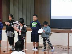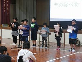 11月7日(金)の午後、ふるさとふれあい発表会を行いました。この行事は、昨年度行っていた感謝祭にかわるものです。プログラムは、校長あいさつの後、原稿用紙3枚に及ぶ児童代表の地域の方々への感謝を表した作文発表。全校児童による歌の発表。6年生による米作りや地域の方々とのふれあい活動を中心とした本年度の取組のプレゼン。その後、各学級ごとに、ふれあい活動の後半に行ってきた地域の方々との質問コーナーで学んだ昔の西門川についてのまとめの発表と盛りだくさんでした。最後には、参加者全員で、校歌を歌いました。参加していただいた方々からは、発表が終わるたびに大きな拍手とお褒めの言葉をいただきました。