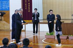 昨日の朝の活動で、「人権の花」運動の感謝状贈呈式が行われました。事務局として、安田町長様をはじめ法務局の方々、教育長様、教育委員会の方々、人権擁護団体の方々が来校され、本校と西門川中学校に対し、感謝状を贈呈してくださいました。本来なら、花の苗やプランターをプレゼントしていただいているのに、感謝状までいただいて恐縮するばかりでした。心から感謝申し上げます。
