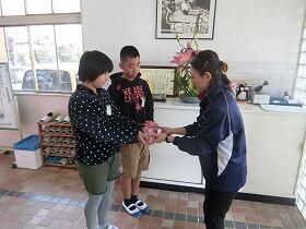 ところで、12日(水)に高齢者福祉施設「ふれあい地球館」の代表の方々に子どもたちが育てた餅米58kgをもちつき用として贈呈しました。毎年のことですが、いつも地球館の方々は、感謝の気持ちを言葉だけでなく、満面の笑顔で表してくださいます。つい本校の子どもたちや職員も笑顔になります。楽しい餅つき大会になることを心から願っています。また、昨年同様、ついたお餅で作った鏡餅を準備してくださるということで逆に恐縮しています。