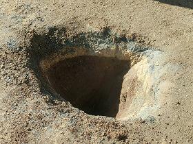 昨日、運動場を眺めていると、6年生が一生懸命にスコップで穴を掘っていました。何をしているのか聞いてみると、地層を探しているということでした。掘った穴の中を見させてもらうと、見事にきれいな地層が見られました。
