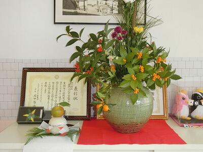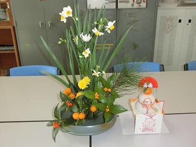 ちなみに、新年を迎えるにあたり、本日事務室の先生が、玄関と校長室に鏡餅と花を飾ってくださいました。今年最後の写真はその花にさせていただきました。心が癒やされます。