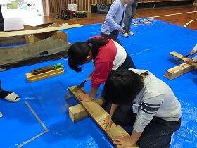 今日は、6年生7名が、古民家再生協会の方々6名を講師に招き、住教育の体験学習を行いました。ちなみに前回は豚肉を使ったとんとん教室でしたが、今回は大工さんのトントン教室なので、全く別の学習です。