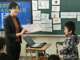 本校の子どもたちは、いつも先生方と一生懸命に授業に取り組んでいます。1年生は、生活科の学習をしていました。昨日行った冬探しでみつけた冬の様子をカードに一生懸命まとめていました。2人が黙々と集中して取り組んでいる様子にただただ感心するばかりでした。3年生は理科の学習をしていました。これまでの学習を生かしたおもちゃづくりの計画をする学習でしたが、黒板が文字で埋め尽くされていて、子どもたちからたくさんの考えが出されたことが容易に分かりました。4年生は、国語の学習でした。先生と1対1で、発表会に向けたインタビューの内容を話し合っていました。1対1なので、当然集中力抜群でした。5年生も国語の学習でした。自分の所属している委員会活動をどうやって効果的に紹介するか、ワークシート使いながら一生懸命自分の考えを整理していました。さすが高学年という落ち着いた授業態度でした。6年生は、テストを行っていました。あまりの集中した様子にじゃまをすると悪いと感じたので、撮影はやめました。