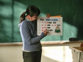 今回発表する児童は、昨年度の2学期に福岡から本校に転校してきた児童です。他の児童とは、また違った視点でふるさと西門川を見たり、感じたりしたことで、気づいた西門川のよさを素直に表現してました。明日は、きっと多くの方々に感動を与えることになると思います。期待しています。